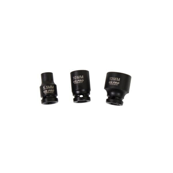 14PC 1/4" DR 6 PT SHALLOW IMPACT SOCKETSGenuine US Pro Industrial 1/4" Drive Shallow Impact socket setAvailable to buy online and instore at SBW Trading Limited DarlingtonSizes: 4, 4.5, 5, 5.5, 6, 7, 8, 9, 10, 11, 12, 13, 14 and 15mmAll 1/4" Drive6 PointSupplied on storage rail.CR-MO