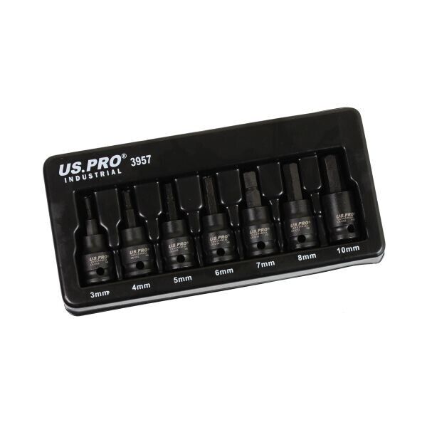 US PRO Impact Hex Bit Socket Set 3/8" Drive 3mm To 10mm Allen Bit Tools 7pc 3957