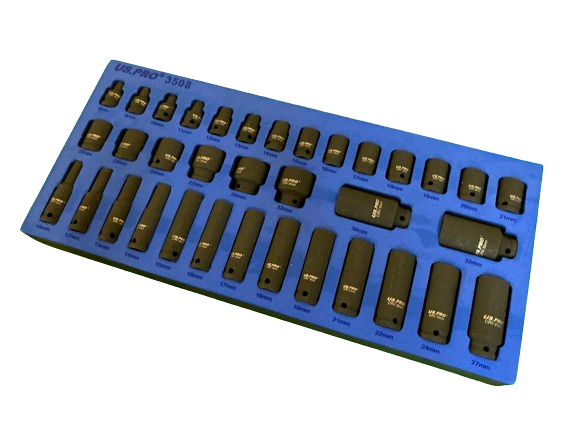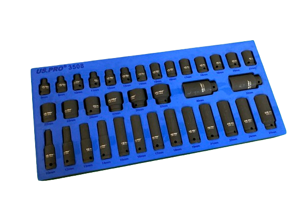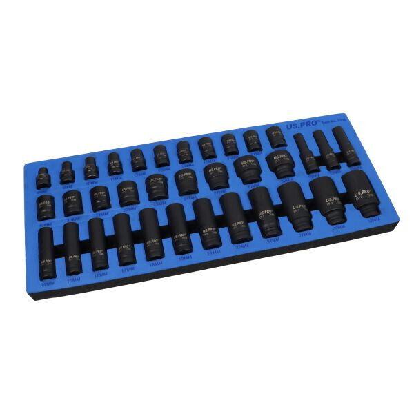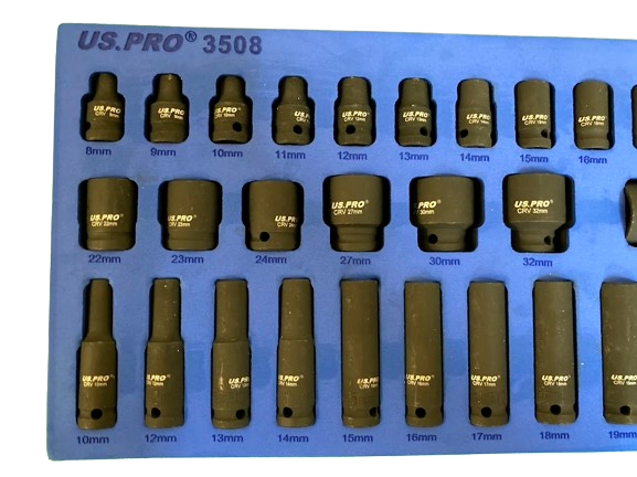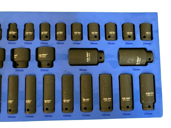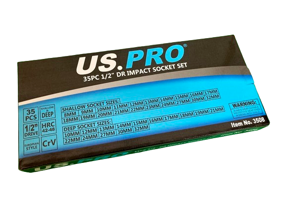 US PRO IMPACT SOCKET SET 1/2" Drive DEEP & SHALLOW 35pc 8mm-32mm 6pt Hex Sockets