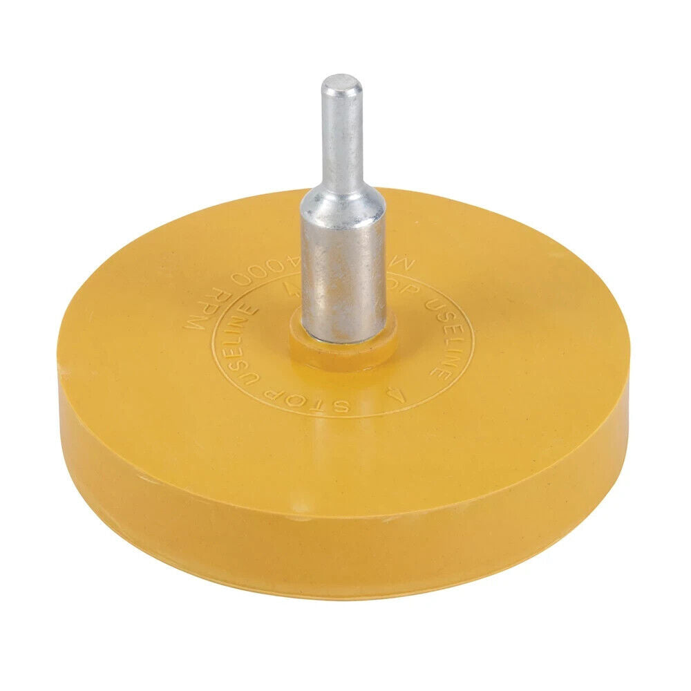 US PRO RUBBER WHEEL FOR DECAL REMOVAL - CARAMEL WHEEL. This set includes A rubber wheel used for removing vinyl, decals, trim glue and other items that leave adhesive marks on a vehicles body work. Often referred to as a caramel or toffee wheel, the wear resistant rubber wheel will not scratch or damage acrylic enamel or urethane paint. Perfect for professionals and DIY enthusiasts alike.